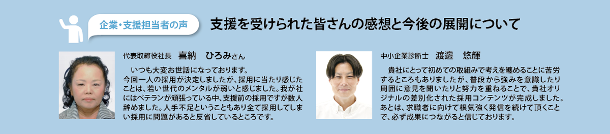 アンケートを活用し、ニーズとPRポイントを明確化することで当社独自の魅力が浮かび上がりました。転職に不安を抱える運送業未経験者に対するフォークリフト免許や中型免許の取得サポート、先輩ドライバーとの40時間のOJTなどです。求職者のニーズに対応する隠れたPRポイントがいくつも見つかりました。