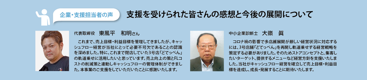 抱える課題に対応するため、「どてっぺん」を再開し軌道に乗せるための経営戦略を策定することで、事業を再構築し、金融機関からの借入金を円滑に償還するキャッシュフローを確保する売上目標・利益目標を達成するための支援が必要です。