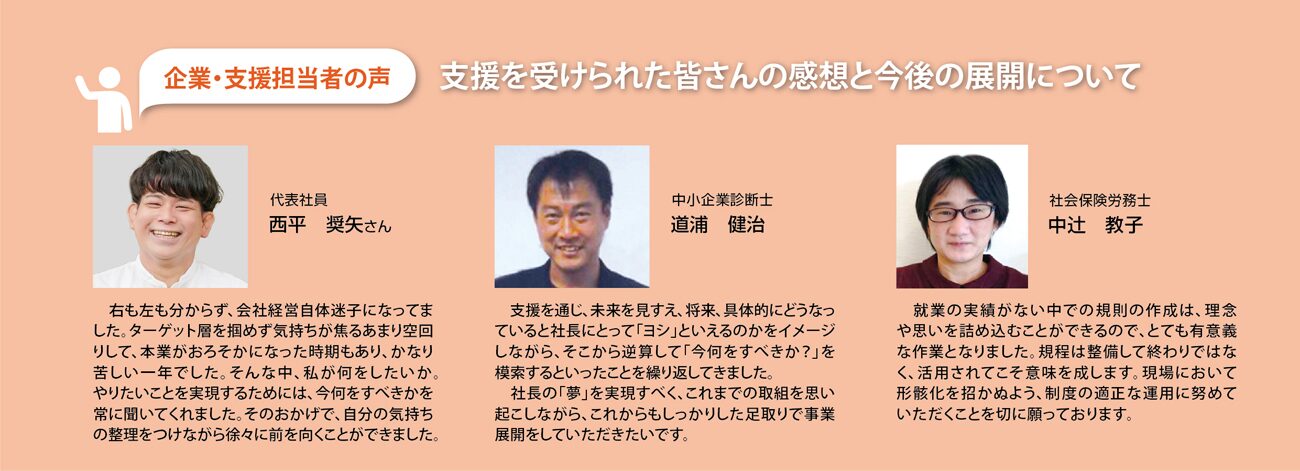 さらには、修正事業計画をまとめることもできたため、金融機関に対する説明もしっかりできるようになり、新規事業を展開するための資金繰りの目途もつけることができました。今後も引き続き、持続可能な事業運営をしていく予定です。どうもありがとうございました。