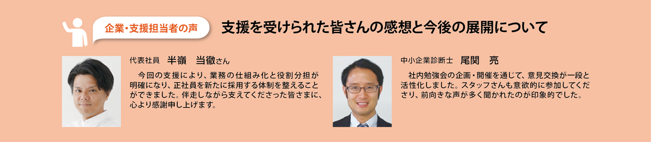 法人としてさらなる事業拡大と次のステージを目指すにあたり、技術力に加えて「経営視点」を組織全体で共有することを課題として設定しました。決算書の公開は行っていたものの、踏み込んだ説明などが十分にできていない状況。決算内容を分かりやすく共有し、当事者意識を高めながら一体となって経営に取り組む土台づくりをテーマとした支援を実施しました。