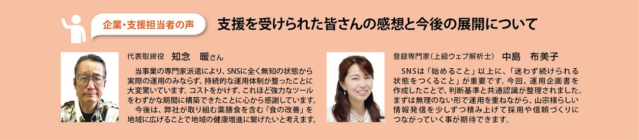 今後は、採用活動にとどまらず、地域に根差した企業としての姿勢や取り組みを発信していくことで、「山宗」ブランドの認知および信頼向上につながるデジタル活用を推進していくための基盤が整いました。