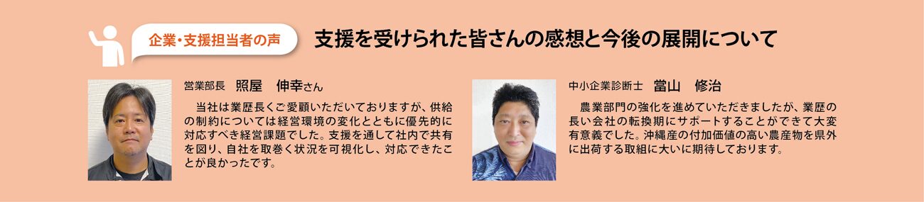 また、試験的な商品開発を担う拠点としての整備も行うことができました。今後、当社としては、パパイヤをはじめ新たな農産物の流通を担い、付加価値高い新たなニーズに対応して参ります。地域における安心・安全・地産地消をベースとしつつも、沖縄から県外への農産物流通拡大を視野に展開する取り組みとなりました。